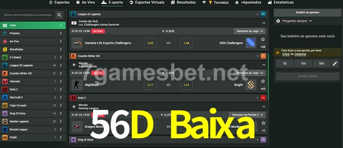 O 56D Baixa oferece uma grande seleção de opções de apostas em e-sports com probabilidades competitivas